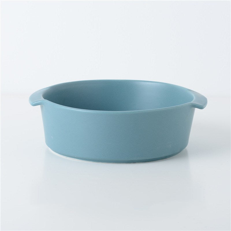 Size: diameter 18cm, including ears 21cm, height 6cm Material: Ceramic Specifications: Anti-scalding double-ear striped deep bowl Green, anti-scalding double-ear striped deep bowl Dark blue, anti-scalding double-ear striped deep bowl Avocado green, anti-scalding double-ear striped deep bowl yellow